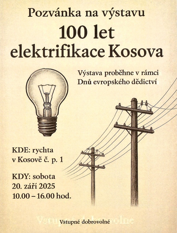 Pozvánka na výstavu ke 100 letům elektrifikace Kosova :